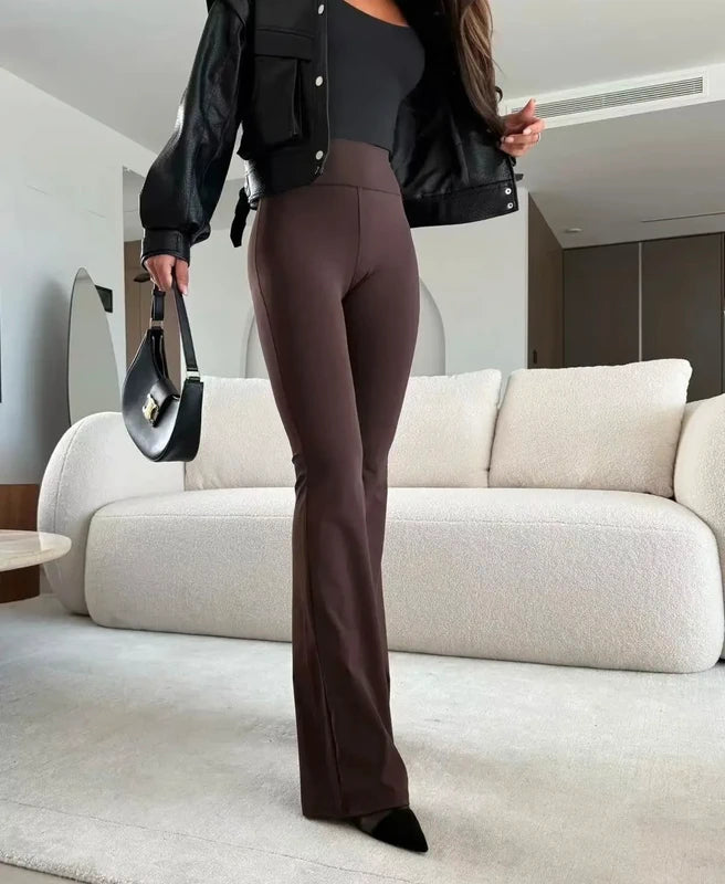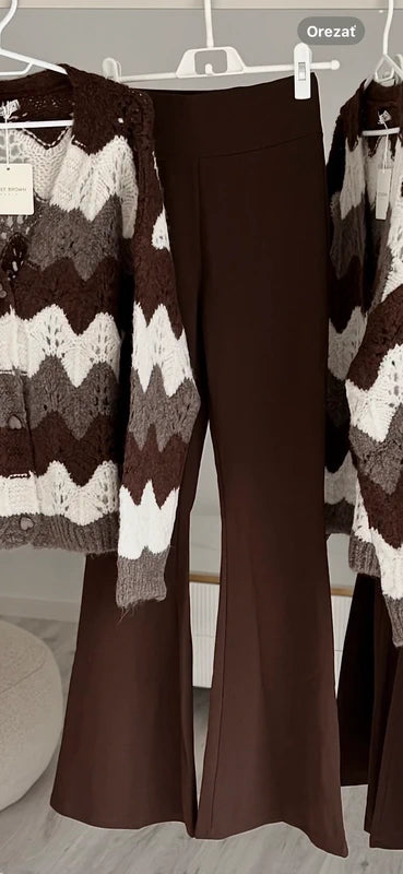 Flare nohavice s klasickým strihom a rozšírenými nohavicami, ktoré dodávajú elegantný a nadčasový vzhľad. Vyrobené z kvalitného materiálu s dokonalou elasticitou pre pohodlné nosenie počas celého dňa. Ideálne na formálne príležitosti aj na každodenné nosenie. Vysoký pás poskytuje podporu a vytvárajúci štíhly siluetu. Ľahko sa kombinujú, čo z nich robí univerzálny kúsok do každého šatníka.